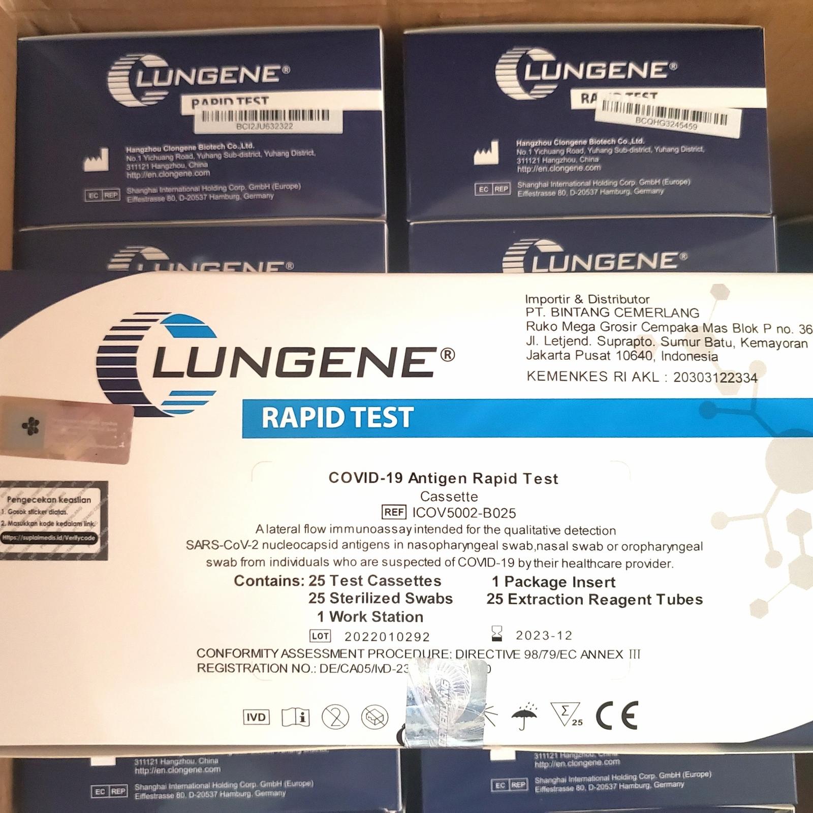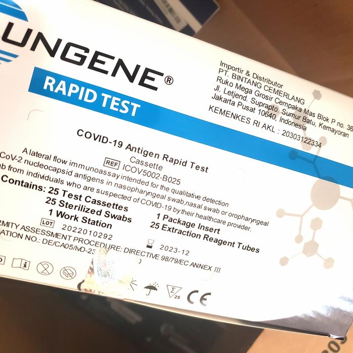 Dapatkan Lungene Biru Antigen Rapid Test Kit yang telah mendapatkan izin edar dari Kemenkes RI. Setiap kemasan berisi 25 test kit untuk kebutuhan testing skala kecil maupun besar.