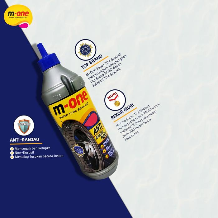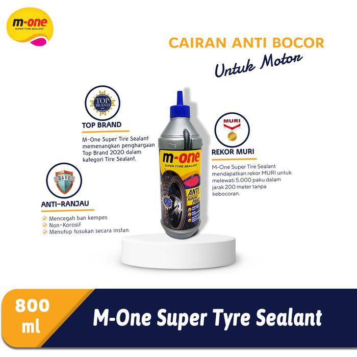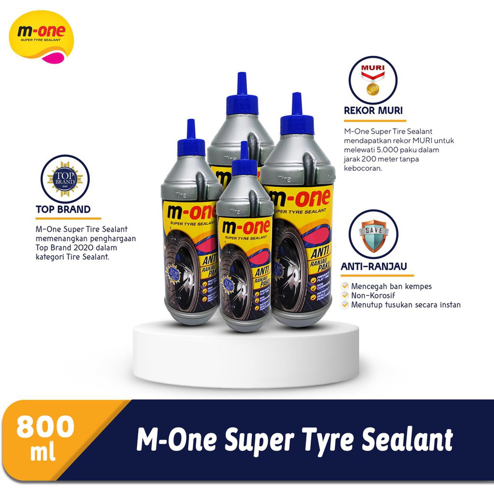 Dapatkan M-One Super Tyre Sealant ukuran 800 ml untuk perlindungan ban yang lebih maksimal dan bebas khawatir terhadap kebocoran.