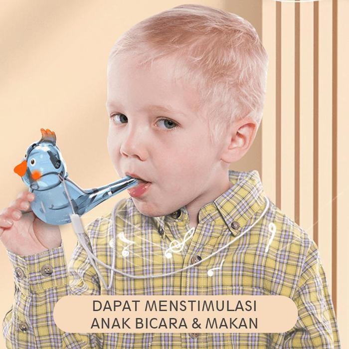 Tiuplah langsung pada ekor burung untuk menghasilkan suara. Untuk pengalaman yang lebih interaktif, masukkan sedikit air ke dalam mulut burung, lalu tiup ekornya. Mainan ini akan menyemburkan air dan mengeluarkan kicauan layaknya burung sungguhan!