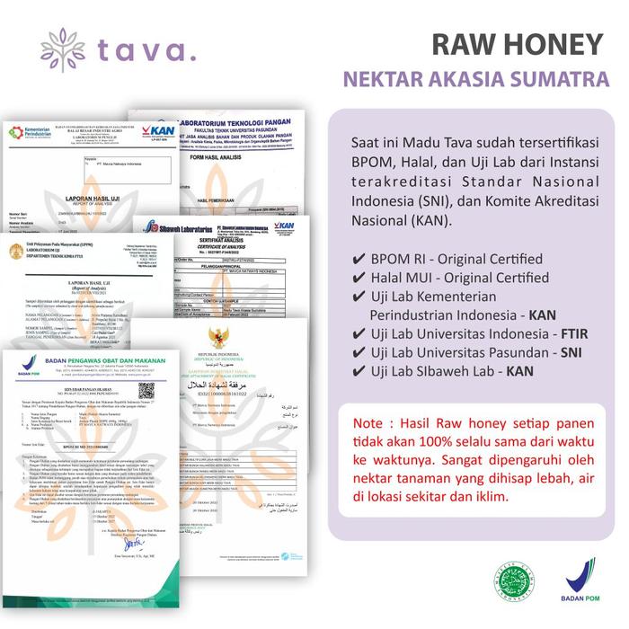 NOTE: Buih dan gas pada raw honey alami bergantung pada jenis nektar dan waktu panen, sehingga kemasan mungkin kembung akibat fermentasi alami selama pengiriman.