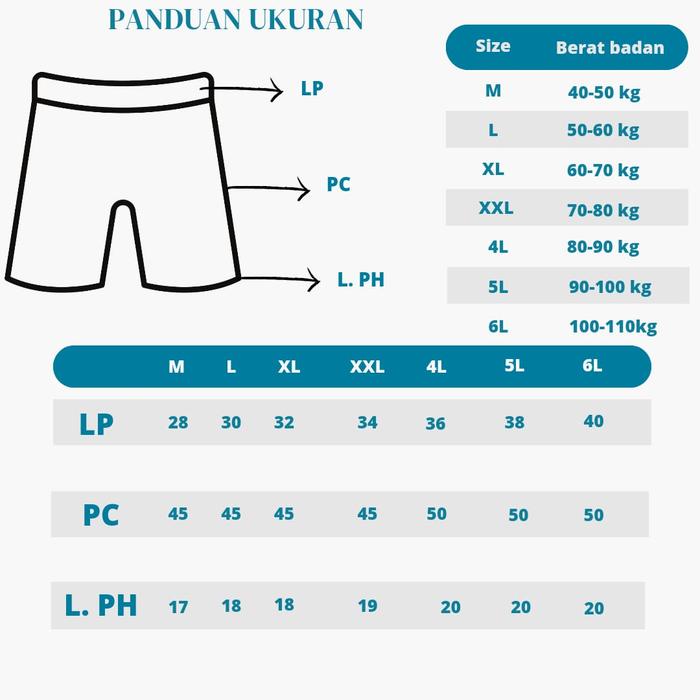 | Size | Ukuran Celana | Lingkar Pinggang (cm) | Panjang (cm) |