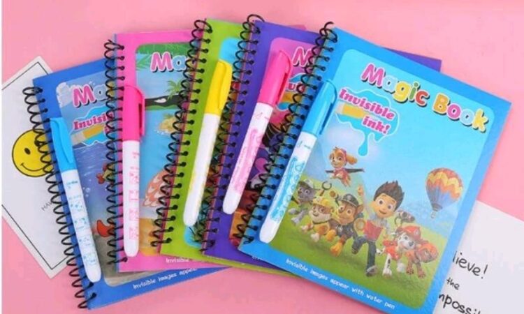 - Magic Pen: Sebuah pena yang dirancang khusus untuk diisi dengan air, bukan tinta. Saat ujungnya yang berpori digosokkan pada halaman buku, air akan bereaksi dengan lapisan khusus pada kertas sehingga warna tersembunyi muncul.