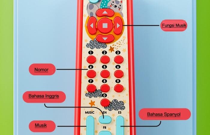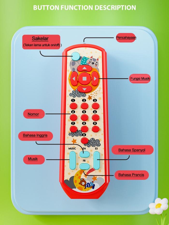 | Pengenalan bahasa (Inggris, Spanyol, Prancis) dalam angka (varian TV Remote) | Melatih motorik halus: menekan, menggenggam, menarik, dan memutar |