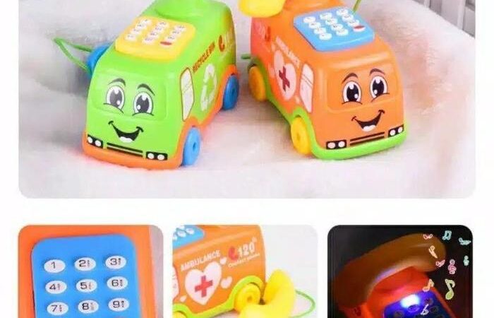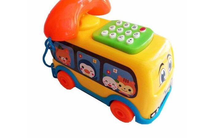 Mainan ini dirancang untuk merangsang imajinasi dan perkembangan sensorik anak. Bentuk bus yang familiar dilengkapi dengan fitur telepon dan musik yang menarik, membuatnya cocok sebagai teman bermain sekaligus media belajar.