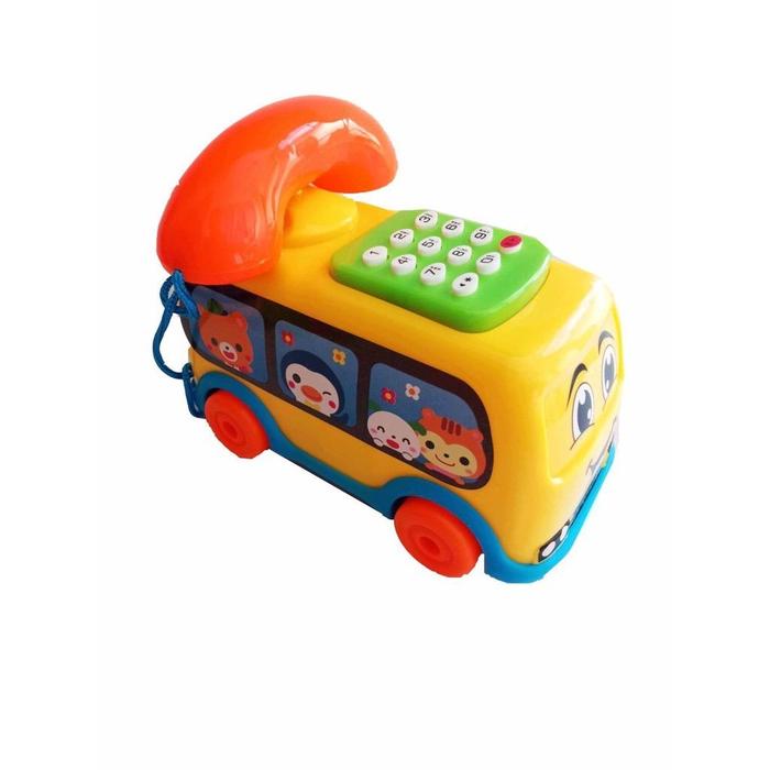 Mainan ini dirancang untuk merangsang imajinasi dan perkembangan sensorik anak. Bentuk bus yang familiar dilengkapi dengan fitur telepon dan musik yang menarik, membuatnya cocok sebagai teman bermain sekaligus media belajar.