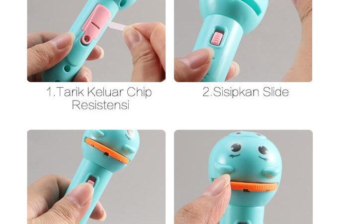 • Mengatur Fokus: Memutar bagian kepala senter untuk membuat gambar proyeksi menjadi lebih tajam dan jelas, serta mengatur ukuran gambarnya.