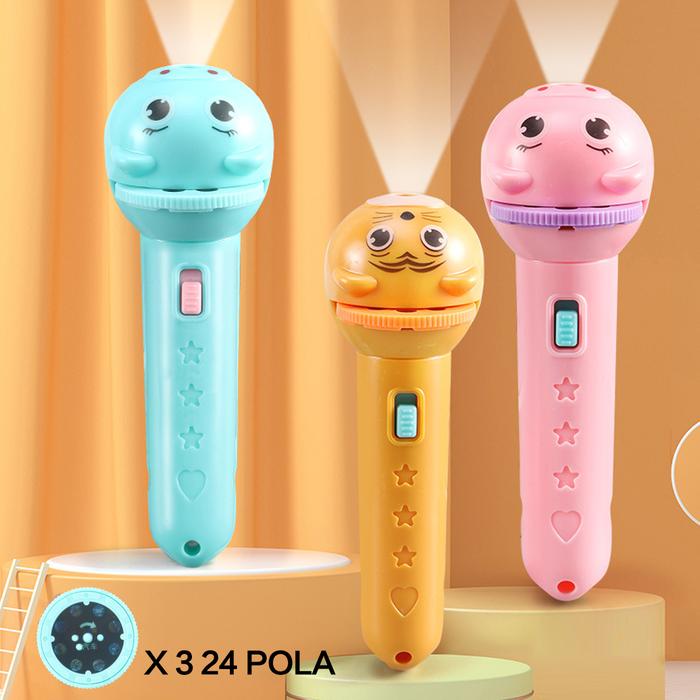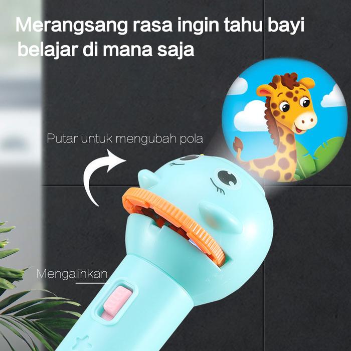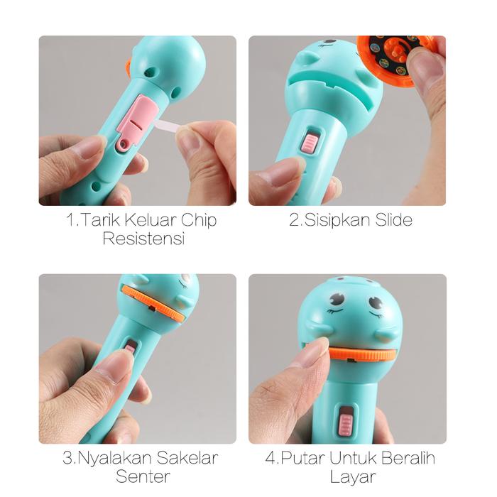 • Mengatur Fokus: Memutar bagian kepala senter untuk membuat gambar proyeksi menjadi lebih tajam dan jelas, serta mengatur ukuran gambarnya.