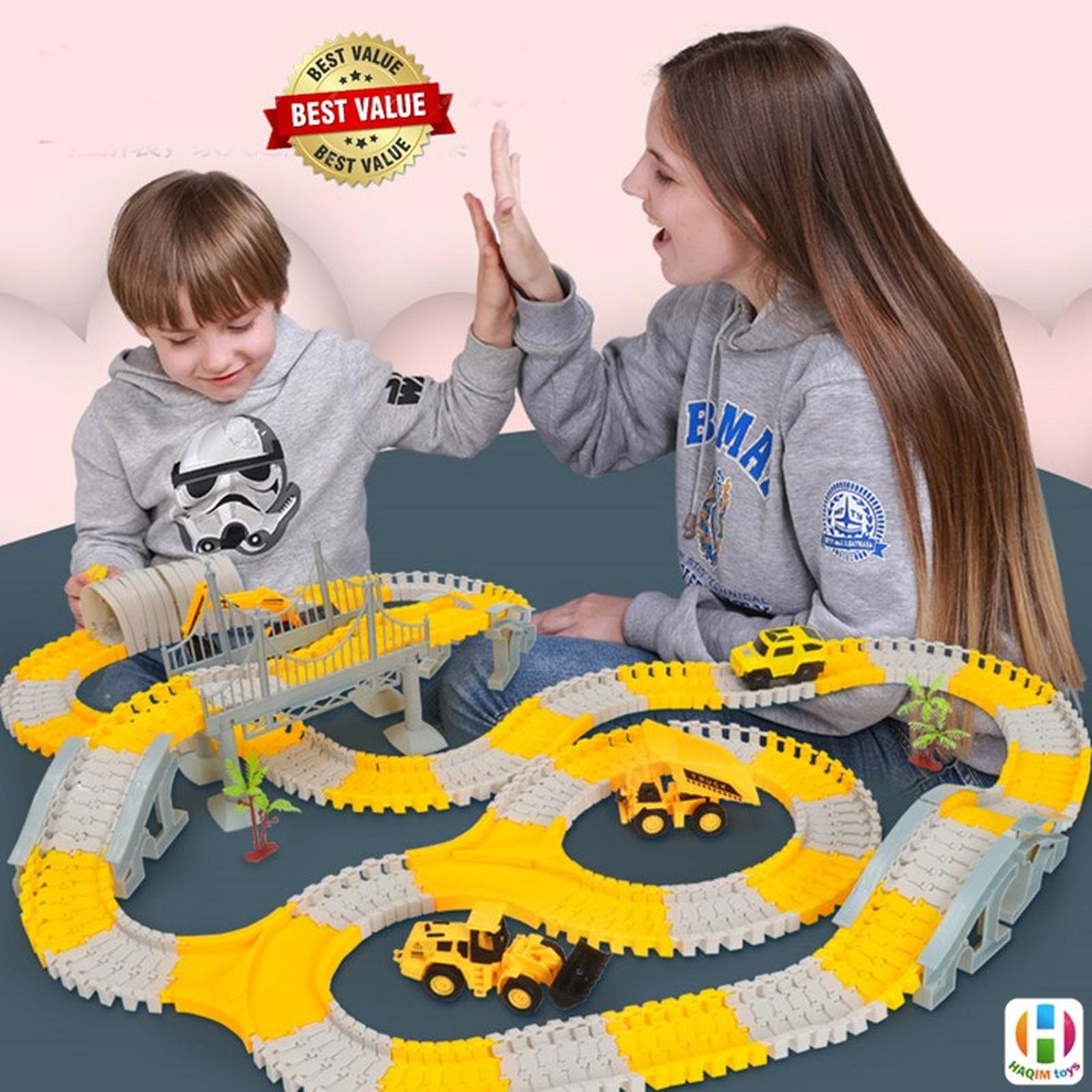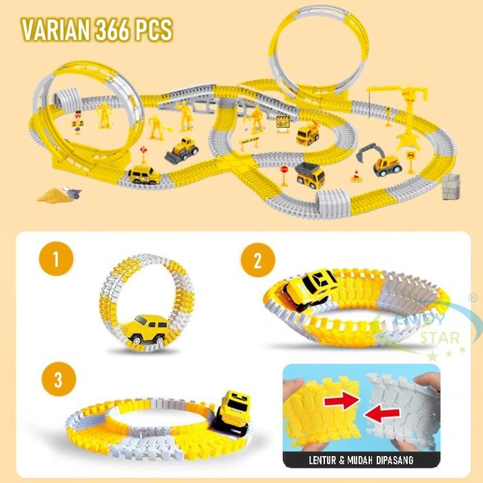 Beri si kecil pengalaman bermain yang seru dan mendidik dengan set track konstruksi ini! Dilengkapi 255 potong bagian, anak dapat berkreasi membangun berbagai bentuk trek sesuai imajinasinya. Mainan ini termasuk 4 unit mobil, dengan 1 mobil elektrik yang dapat berjalan otomatis mengikuti rel yang telah dibuat.