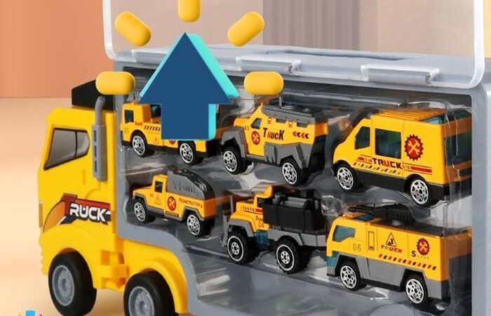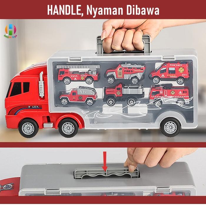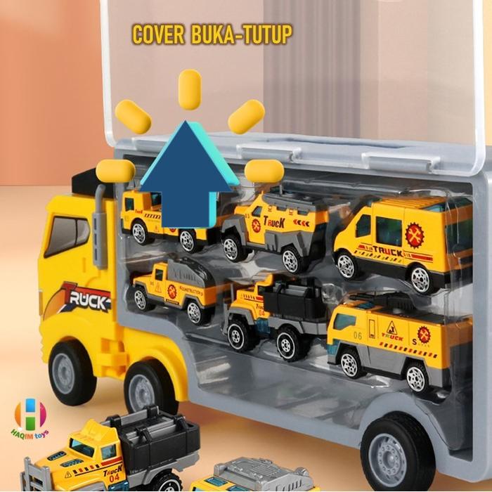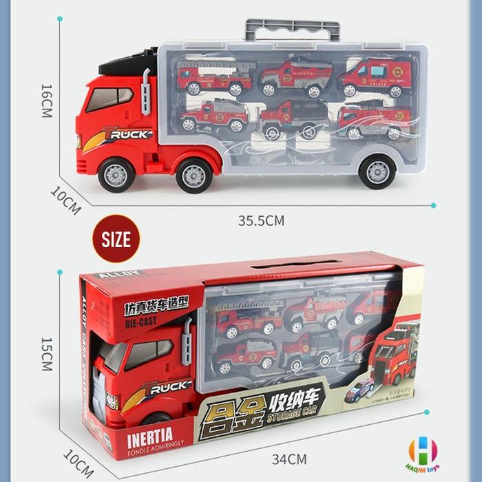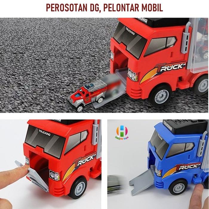 | Set Lengkap | 1 unit truk kontainer portable dan 6 mobil mini die-cast dengan desain berbeda. |