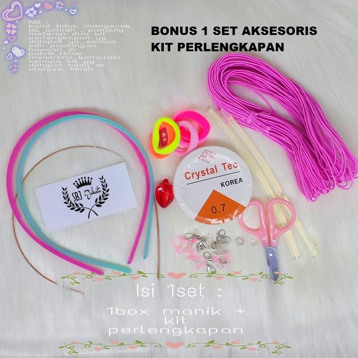 Dapatkan BONUS 1 set benang dan perlengkapan lengkap secara gratis dalam setiap pembelian! Anak-anak dapat langsung berkreasi membuat kalung, gelang, atau berbagai bentuk menarik lainnya.