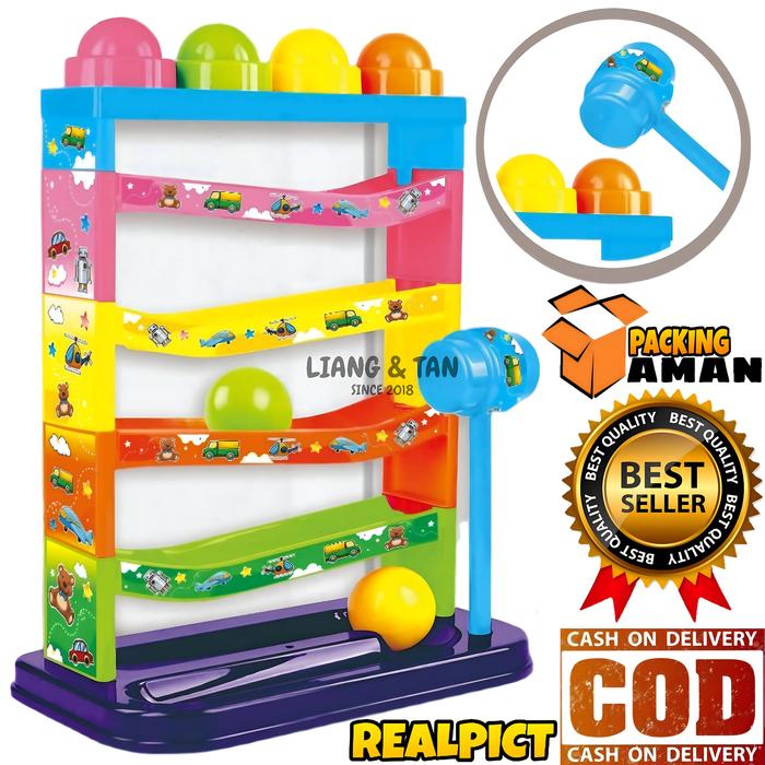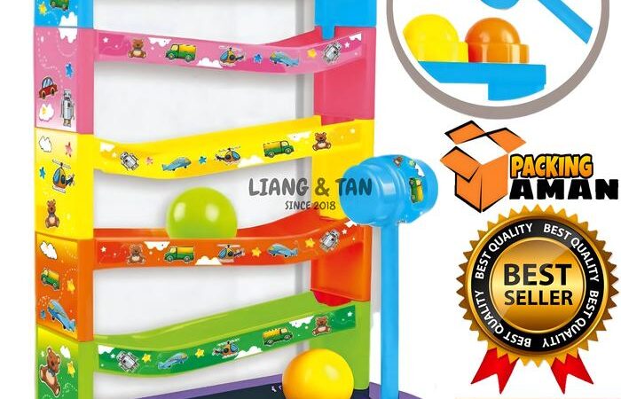 | Komponen Lengkap | 1 set track kit (lintasan seluncur), 1 palu, dan 4 bola warna-warni. |