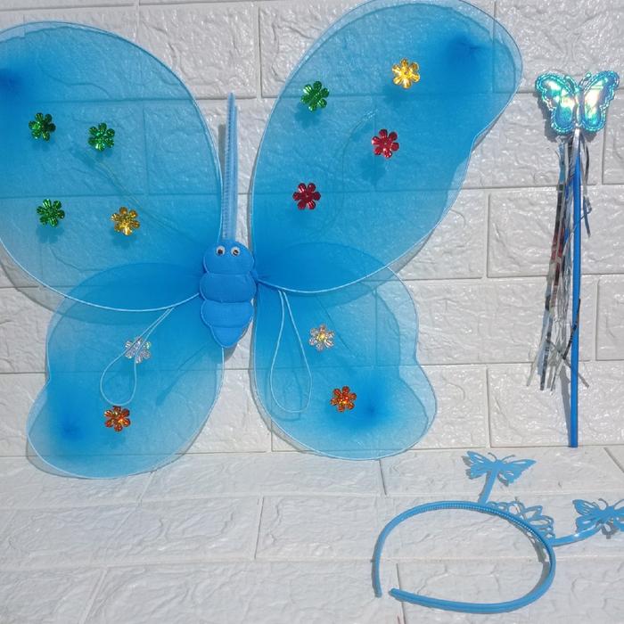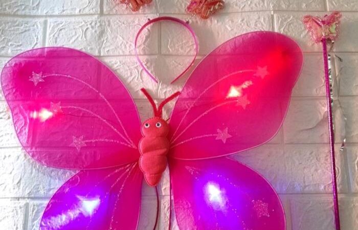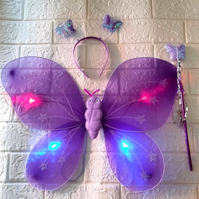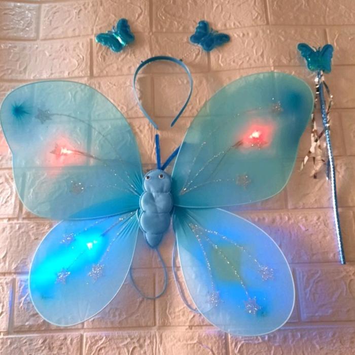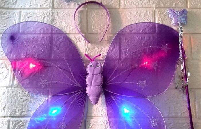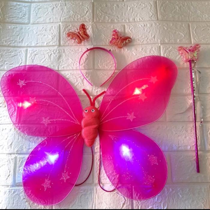 | Isi dalam Kemasan | 1 pasang sayap kupu-kupu bercahaya, 1 bando, dan 1 tongkat ajaib. |