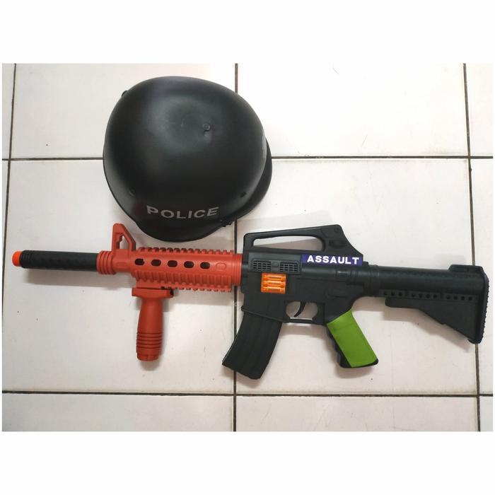 ✅ Desain Realistis – Mirip senjata tentara/polisi dengan helm tambahan.