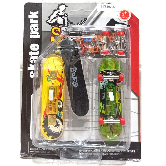 | Isi Paket | 2 buah skateboard mini + aksesoris ban dan kunci |