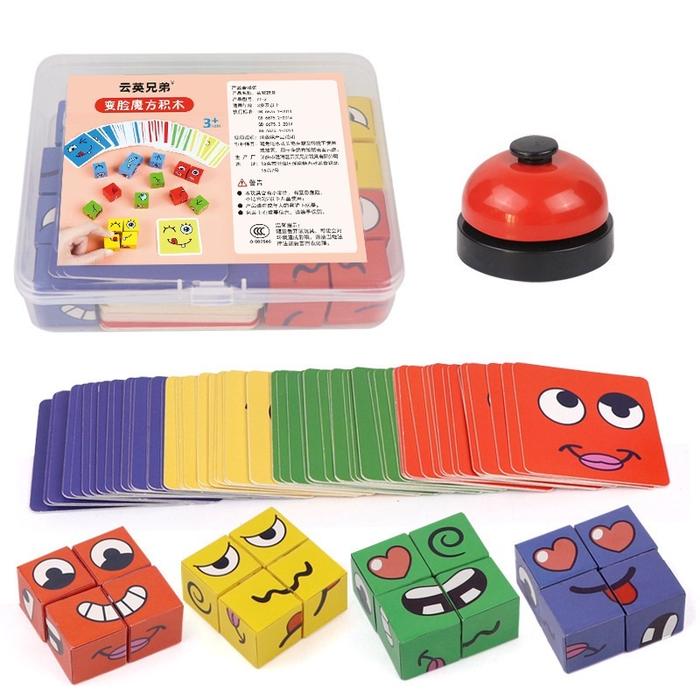 | Mainan Pendidikan Interaktif | Kubus ekspresi wajah ini dirancang untuk melatih keterampilan motorik halus, koordinasi mata-tangan, dan logika berpikir anak. Dengan tantangan menyusun balok sesuai ekspresi di kartu, anak belajar sambil bermain. |