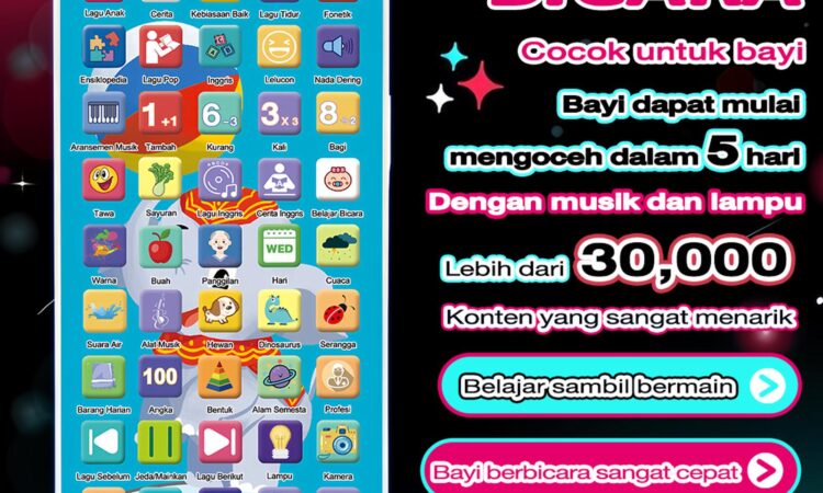 Dirancang khusus untuk merangsang perkembangan anak usia dini, telepon mainan ini menawarkan pengalaman belajar yang menyenangkan dan interaktif. Dilengkapi dengan 28 tombol yang masing-masing memicu berbagai konten edukatif, lampu LED warna-warni, serta audio yang jernih. Cocok digunakan untuk bermain di rumah, ruang tamu, atau kamar tidur.
