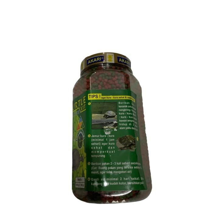Beri yang terbaik untuk hewan peliharaan reptil Anda dengan Akari Turtle Food Vit. Pakan ini dirancang khusus untuk kura-kura, reptil, dan amfibi lainnya dengan kandungan nutrisi lengkap dan seimbang. Ukuran pellet 2 mm dengan campuran warna merah dan hijau sangat disukai hewan.