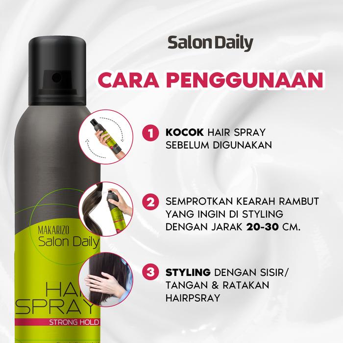 | Cara Penggunaan | Semprotkan dari jarak ±30 cm ke rambut kering atau lembab. Untuk volume ekstra, semprotkan pada akar. |
