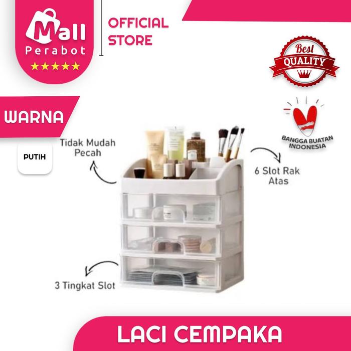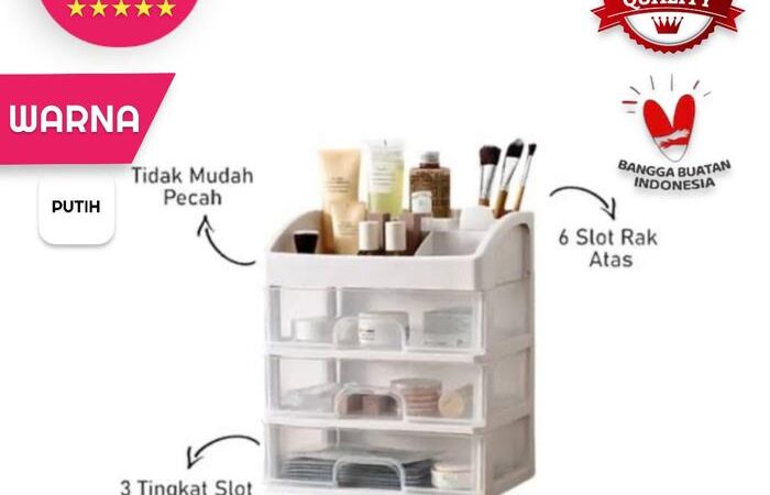 • Kapasitas Maksimal: Dilengkapi dengan 3 laci dan 5 sekat yang dapat dipindahkan, memberikan fleksibilitas untuk menyimpan beragam produk mulai dari lipstik, eyeshadow, hingga perhiasan kecil.