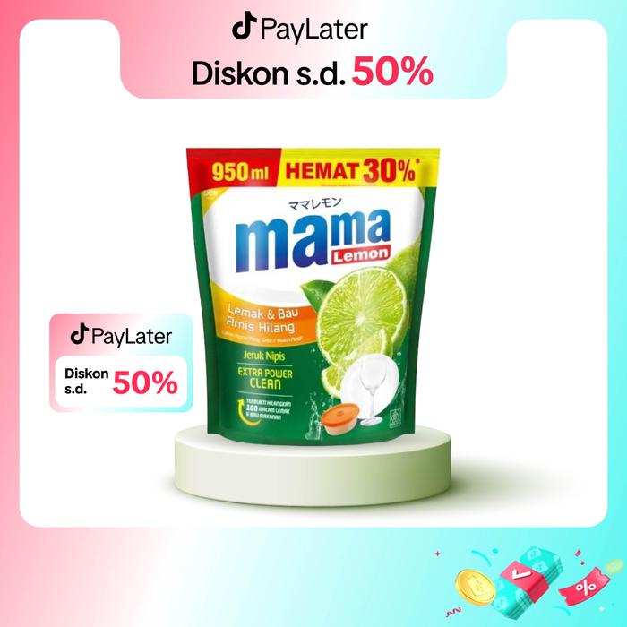 Mama Lemon Jeruk Nipis dengan formula Extra Power Clean terbaru, diperkaya mineral anti lemak dan ekstrak jeruk nipis alami. Terbukti efektif menghilangkan 100 jenis lemak dan bau makanan membandel pada peralatan makan, peralatan masak, serta wadah plastik. Tanpa sisa bau amis atau lengket!