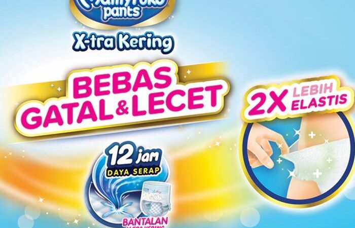 - X-tra Kering: Fitur unggulan Mamypoko Pants dengan daya serap ekstra tinggi, mengurangi risiko ruam popok.