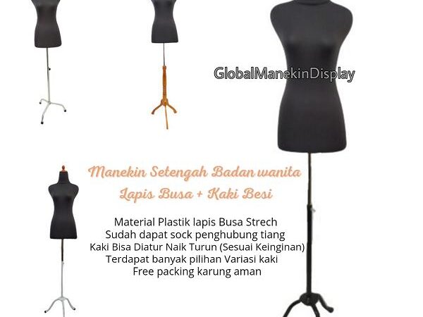 - Kaki Kayu: Tinggi hanya bisa diatur melalui sok (penyambung manekin dan tiang).