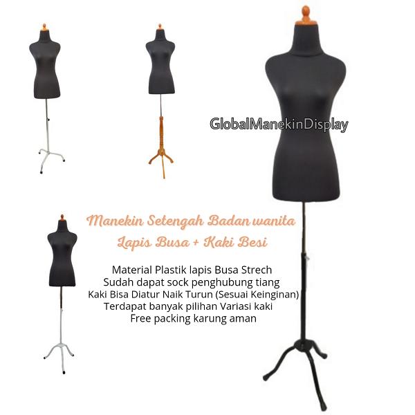 - Kaki Kayu: Tinggi hanya bisa diatur melalui sok (penyambung manekin dan tiang).