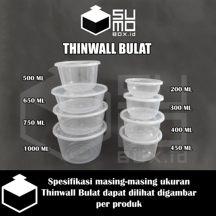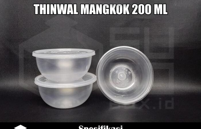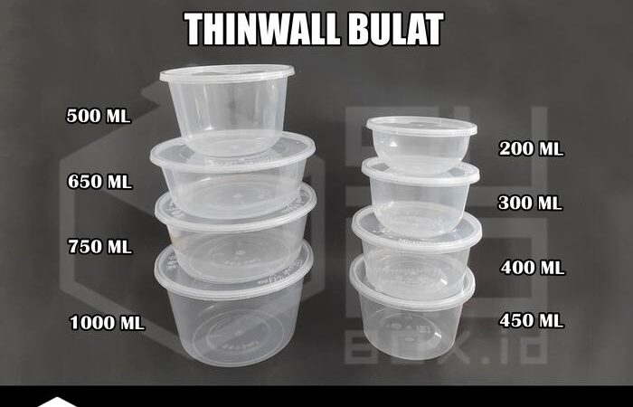 - Thinwall: Jenis material plastik yang ringan dan tipis, namun tetap kuat dan kaku. Dinamakan “thinwall” (dinding tipis) karena proses injeksi moulding yang menghasilkan ketebalan dinding yang rata dan tipis, sehingga lebih hemat bahan dan biaya tanpa mengorbankan fungsi.