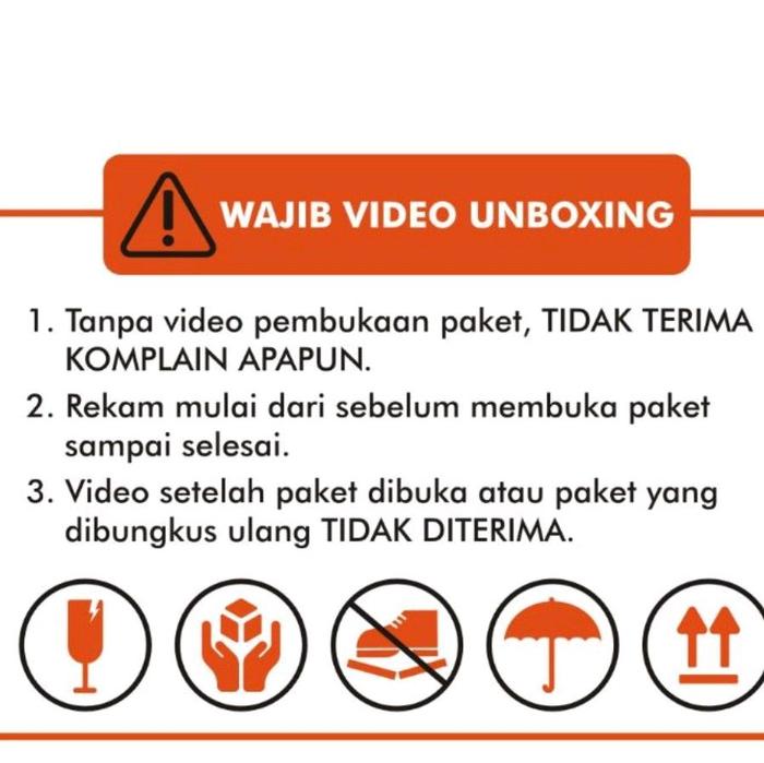 Syarat Komplain: Untuk menjamin keadilan kedua pihak, komplain terkait paket yang tidak sesuai atau kekurangan barang HANYA dapat diproses jika disertai video unboxing yang merekam seluruh proses pembukaan paket tanpa jeda, potongan, atau editing.