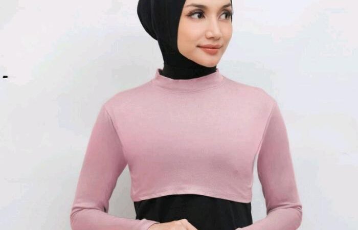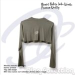 | Desain | Croptop lengan panjang dengan kerah, cocok sebagai atasan muslim atau dalaman basic. |