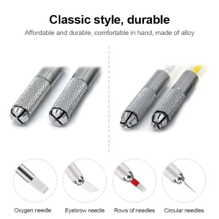 Tingkatkan presisi dan kenyamanan teknik sulam alis Anda dengan alat berkualitas tinggi ini. Manual Pen Krystal didesain khusus dengan dua sisi untuk memudahkan pergantian jarum tanpa membuang waktu. Terbuat dari material plastik premium dan stainless steel yang kokoh serta ringan, menjadikannya ergonomis dan nyaman digenggam selama sesi treatment yang lama.