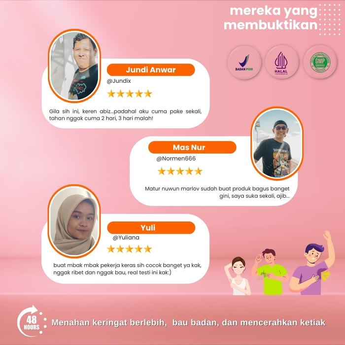 | Aman & Nyaman | Terdaftar BPOM, halal, tidak meninggalkan noda pada baju, dan formulanya ringan serta cepat meresap. |