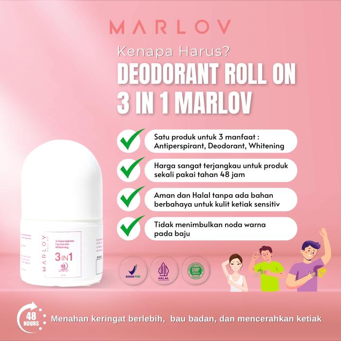 Temukan solusi lengkap untuk masalah ketiak dengan Marlov Antiperspirant Deodorant Whitening Roll On. Formulasi 3 in 1 yang inovatif memberikan perlindungan dan perawatan maksimal, menjawab semua kebutuhan perawatan ketiak Anda.