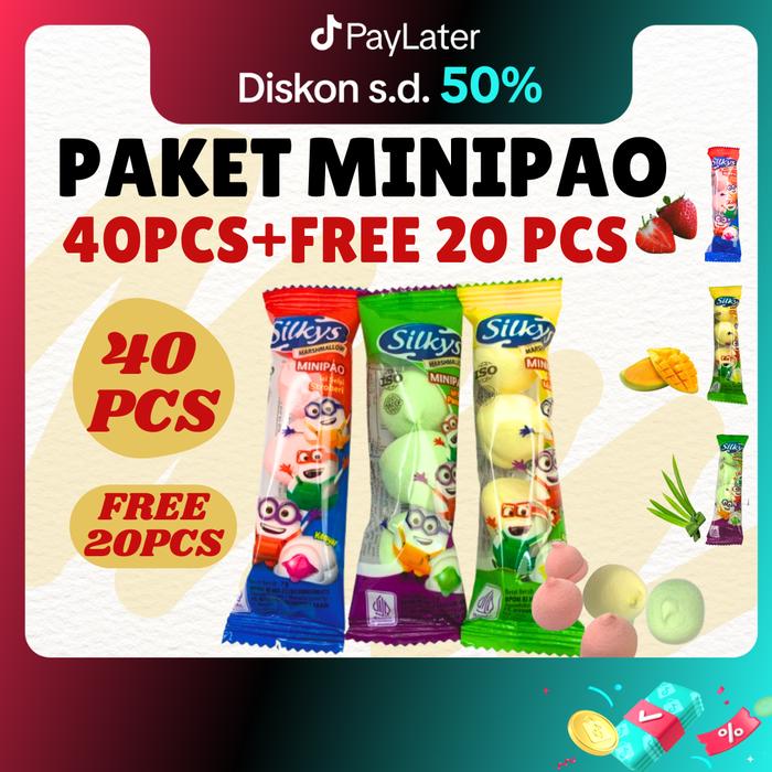 Nikmati kelembutan marshmallow dengan isian yang lumer di mulut! Marshmallow Minipao hadir dengan tiga varian rasa buah yang disukai anak-anak: Mangga yang manis, Strawberry yang segar, dan Pandan yang wangi. Bentuknya yang mini dan lucu sangat cocok jadi teman bekal sekolah atau cemilan sehari-hari di rumah.