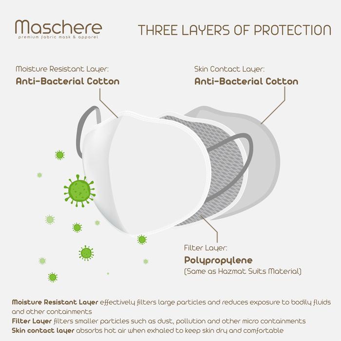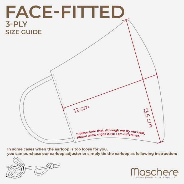 Mari tingkatkan perlindungan sehari-hari Anda dengan Maschere Masker Kain 3-ply Model Fitted yang didesain sempurna menutupi area hidung hingga dagu. Masker universal ini cocok untuk pria dan wanita, dilengkapi tali telinga (earloop) yang nyaman.