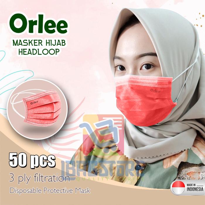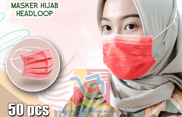 Masker kesehatan berkualitas tinggi dengan desain headloop khusus untuk pengguna hijab, memenuhi standar bahan 3 lapis (3 ply) sesuai anjuran Kemenkes. Sudah memiliki izin produksi dan distribusi resmi dari Kementerian Kesehatan RI.