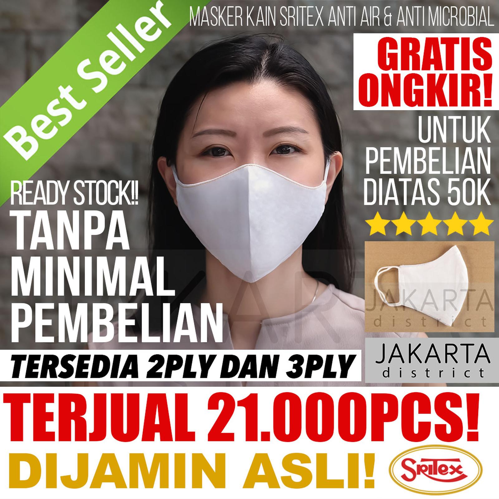 Tersedia stok masker kain non medis Sritex Asli untuk dewasa dan anak. Bahan anti air dan antimicrobial, dapat dicuci hingga 10x pemakaian. Tersedia pilihan 2 Ply dan 3 Ply dalam berbagai varian.