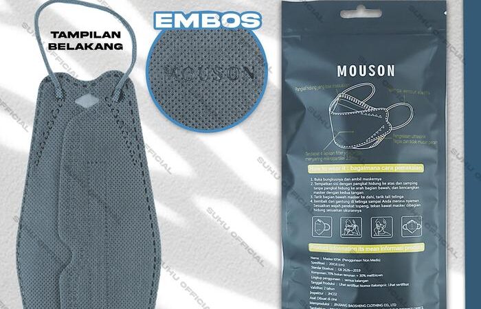 - Non-woven fabric: Bahan serat sintetis yang tidak ditenun, digunakan untuk lapisan luar masker.