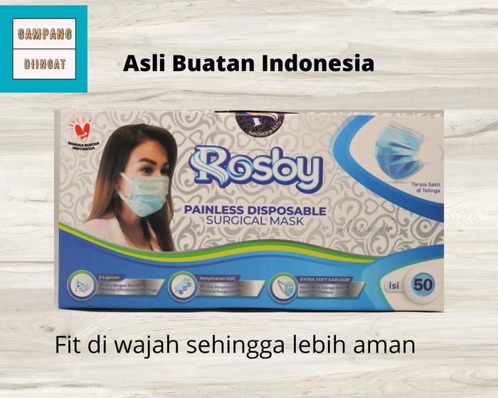 Masker medis sekali pakai Rosby hadir dengan desain ergonomis dan nyaman dipakai berjam-jam berkat tali elastis extra soft yang lebar, sehingga tidak melukai telinga. Dibuat dengan 3 lapisan perlindungan (3 Ply) untuk filtrasi optimal, termasuk lapisan meltblown yang efektif menyaring partikel bakteri dan virus.