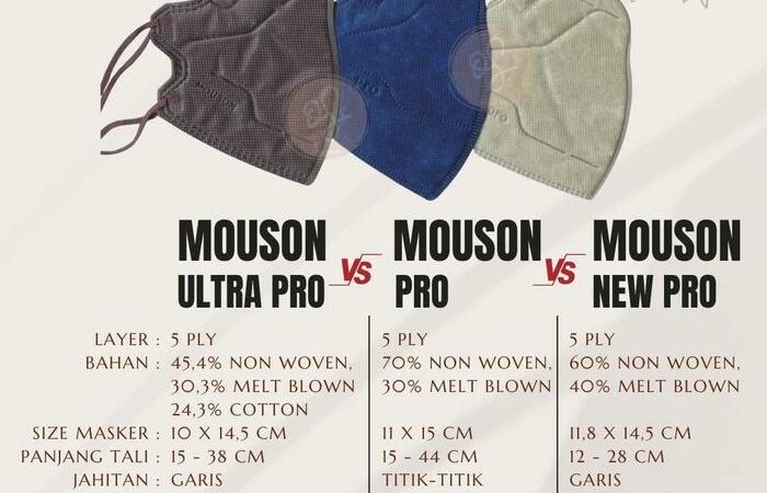 • 5ply/5 lapis: Masker dengan 5 lapisan filtrasi untuk perlindungan optimal terhadap partikel halus.