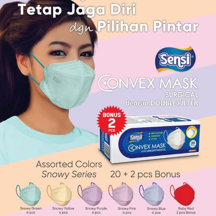 Dapatkan perlindungan terbaik untuk aktivitas sehari-hari Anda dengan Masker Sensi Convex Mask 4ply Earloop. Tersedia dalam berbagai pilihan warna menarik seperti Putih, Biru, Abu, Hijau, Hitam, Cokelat, Pink, Ungu, Merah, serta pilihan Mix 2 warna dan Mix 4 warna. Anda juga dapat melakukan request warna khusus untuk varian mix dengan menuliskannya pada keterangan pemesanan.