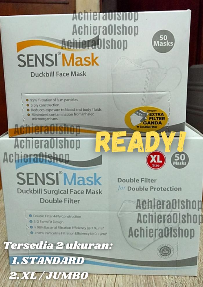 Lindungi diri dengan maksimal menggunakan Masker Sensi Duckbill Face Mask Original. Terbukti 100% asli dengan nomor izin KEMENKES RI AKD 21603318015 dan masa expired hingga tahun 2026, memberikan Anda jaminan keamanan dan kenyamanan.