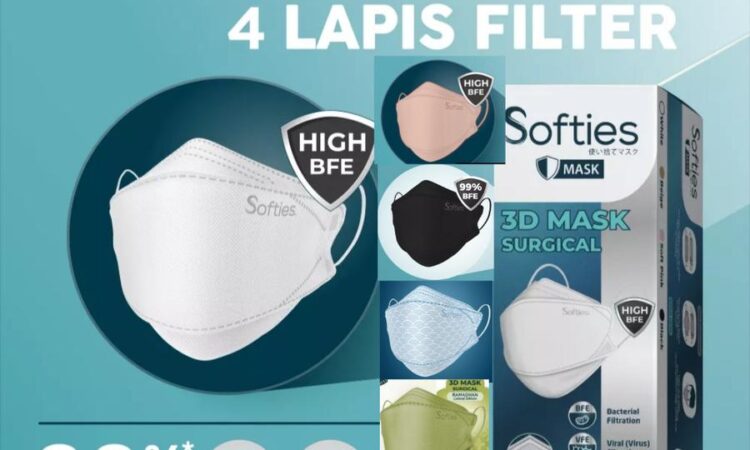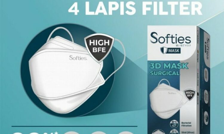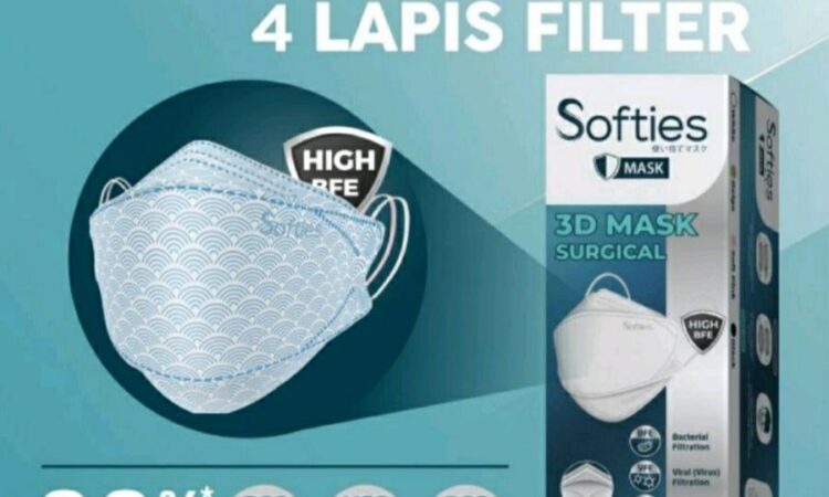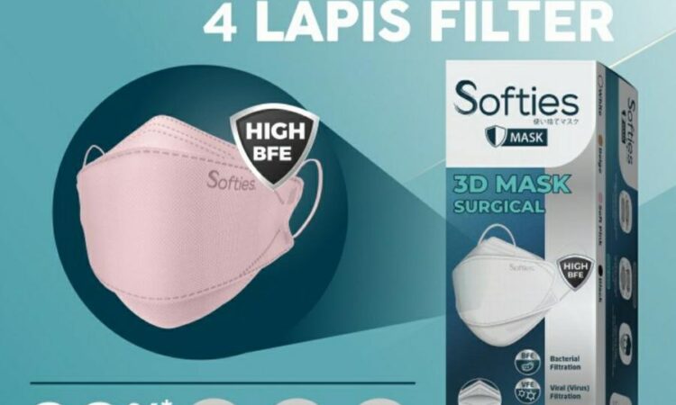 Softies 3D Mask Surgical dirancang ergonomis dengan teknologi 4 lapis filter, menjamin: