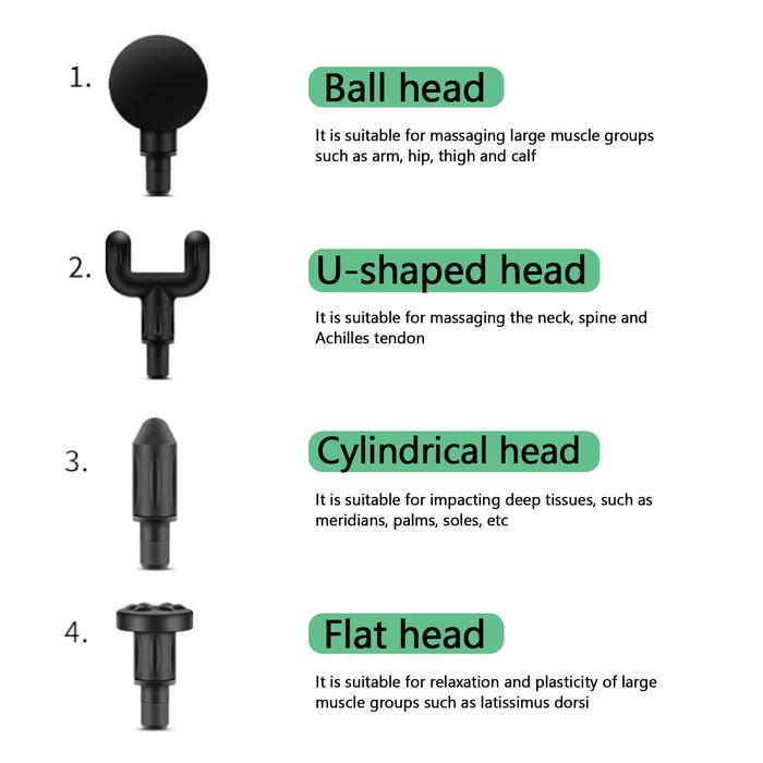 - Meredakan Nyeri & Kekakuan: Menargetkan titik nyeri dengan 4 kepala pijat yang dapat dipertukarkan.