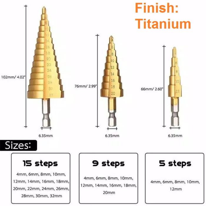 Tingkatkan efisiensi pekerjaan Anda dengan set mata bor step drill berkualitas tinggi ini. Dirancang untuk mengebor material yang beragam, mulai dari besi, kuningan, kayu, hingga plastik dengan hasil yang rapi dan presisi.