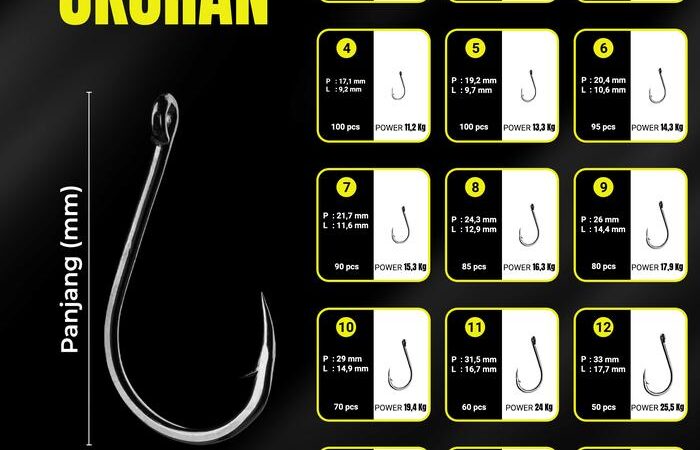 - Power Hook: Desain mata kail dengan struktur tebal untuk menahan beban ikan besar.