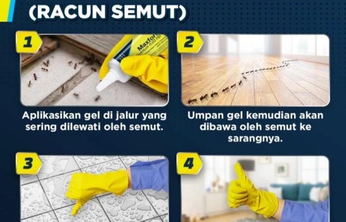 | Tidak berbau, aman untuk area dalam ruangan | Oleskan pada kartu atau titik akses semut (celah, retakan, jalur semut) |