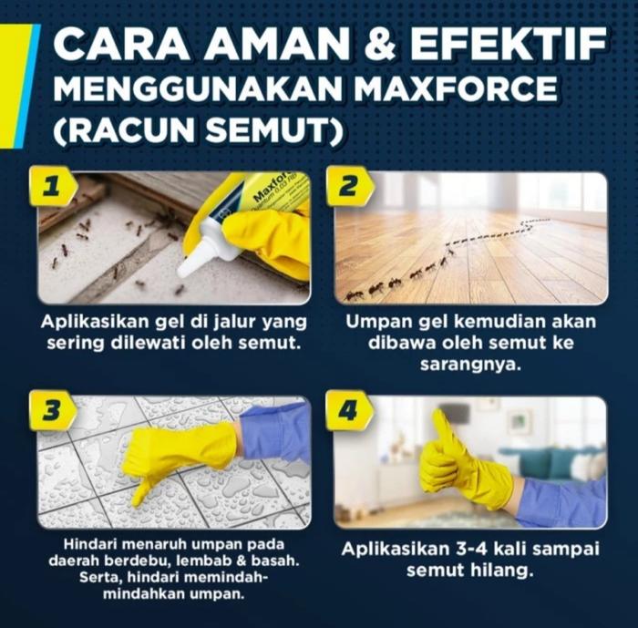 | Efektif membasmi seluruh koloni semut | Jangan gunakan di area berdebu, lembab, atau berminyak |