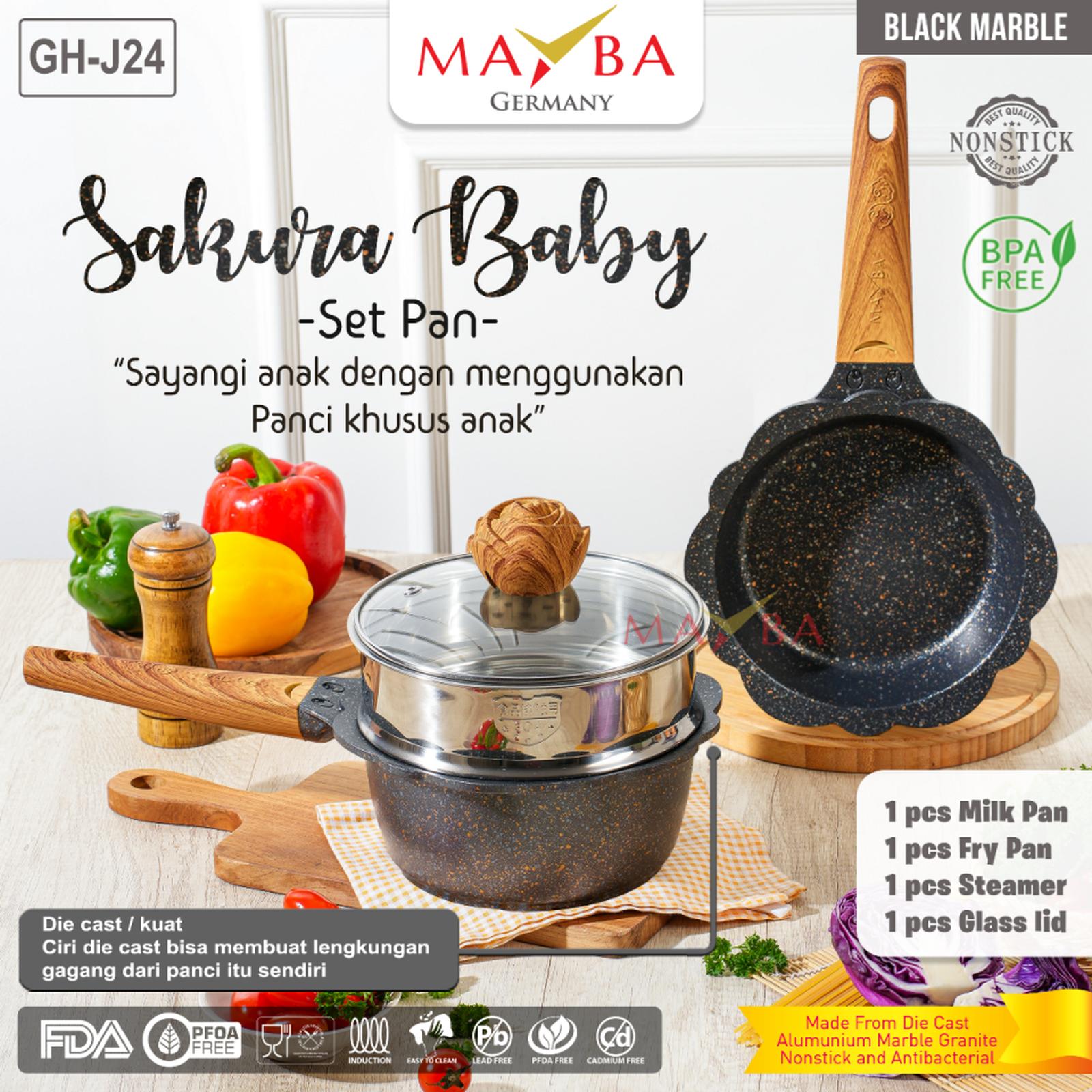 Tampil cantik dan fungsional untuk dapur modern Anda! Mayba Panci MPASI Set hadir dengan desain Sakura eksklusif dari Korea, dirancang khusus untuk keluarga baru. Set ini merupakan solusi lengkap dan aman untuk segala kebutuhan memasak si kecil, mulai dari merebus botol susu, memasak bubur, mengukus, hingga menghangatkan makanan.