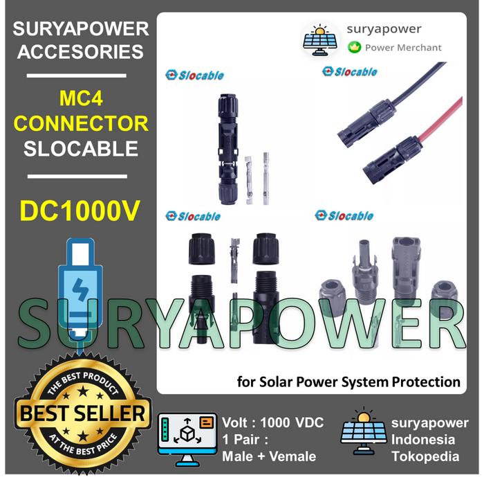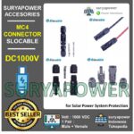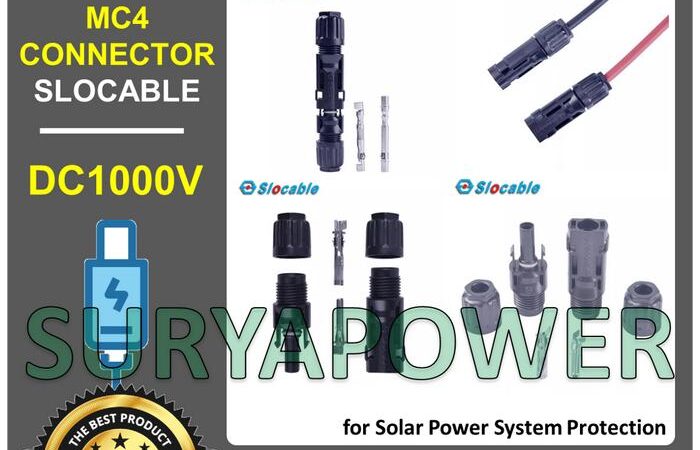 - MC4 Connector: Standar industri untuk konektor yang digunakan pada modul panel surya untuk menyambungkan kabel. Dirancang agar cepat, aman, dan tahan terhadap kondisi lingkungan.